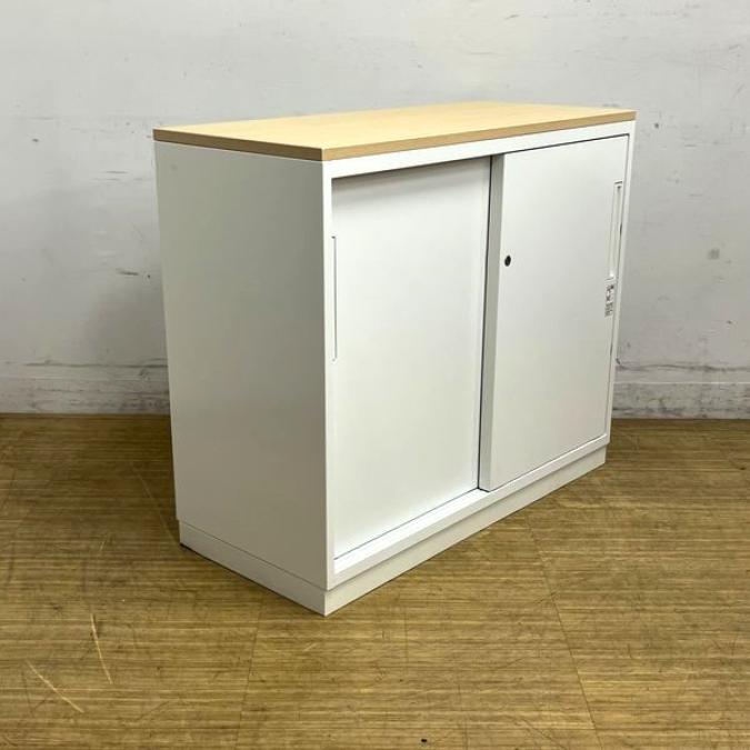 【スライド引き戸だから開閉スペースに困らない!】■コクヨ(KOKUYO)製 エディア(EDIA)シリーズ 2枚引き違い書庫 ローキャビネット シリンダー錠 天板付き ベース付き ホワイト シリンダー錠 収納 中古家具 格安 福岡 オフィス家具 九州最大級《オフィスバスターズ福岡博多店は、福岡を拠点として、日本全国へ中古オフィス用品・オフィス家具を提供しております》