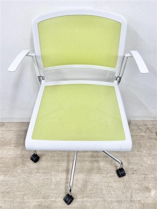 【定価4万円】【キャスター付きミーティングチェア入荷!】■プラス UMチェア ■キャスター付き 座面メッシュ ライトグリーン- 在庫数