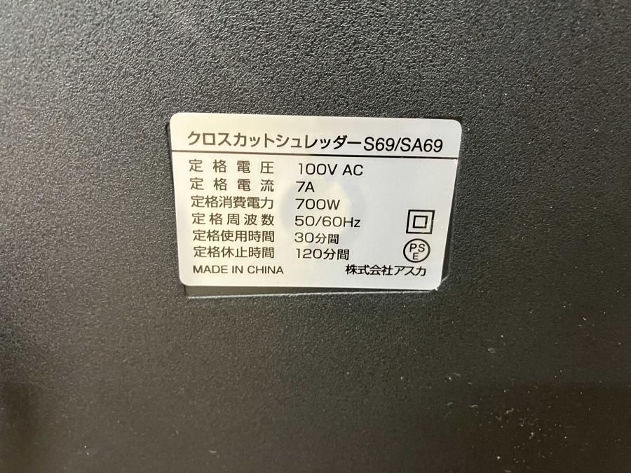 【アスカ製】【S69】光るダストボックス! クロスカットシュレッダー ※型番は【S69】が正しい情報になります。状態について