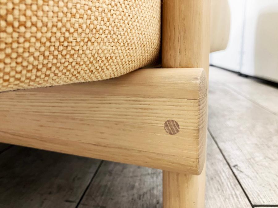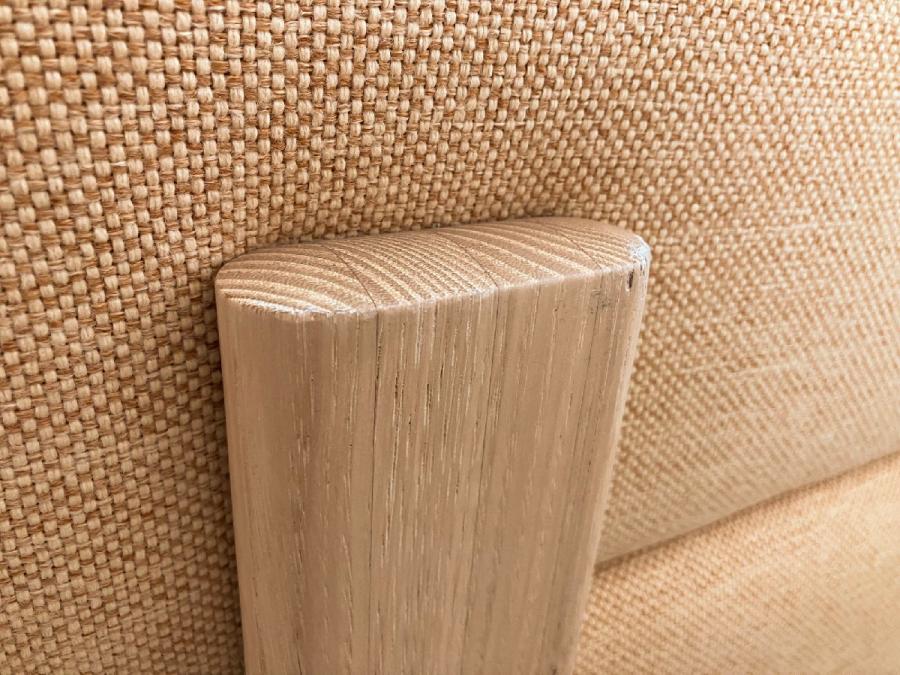 カーブしたアームレストはリラックスでき、また色々な座り方を楽しめます。無垢材から削り出した脚など非常に手の込んだディテールに、他のソファとの違いが込められています。