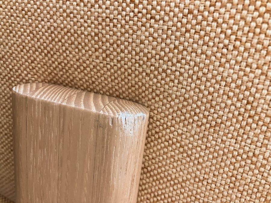 - あり黄ばみ・変色が広い範囲にうっすらある、または濃い黄ばみ・変色が一部ある。(例:三人用ソファ、二人用ソファ、一人用ソファの場合、背もたれ、肘かけ、座面等、 センターテーブルの場合、天板、脚にある。)