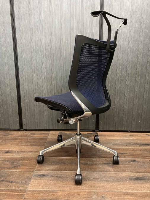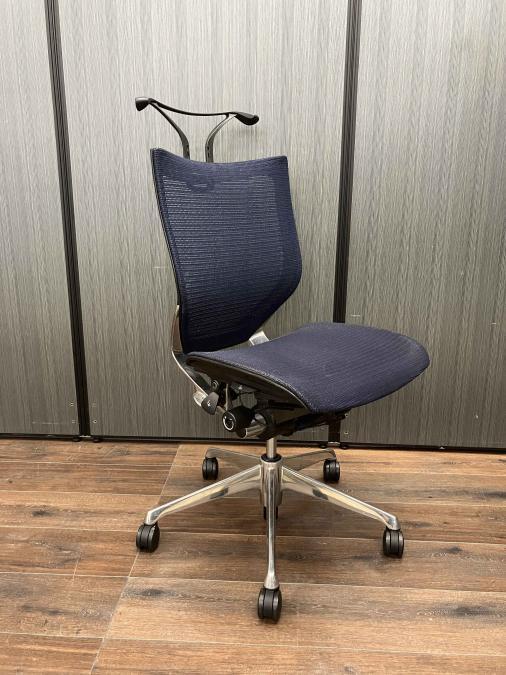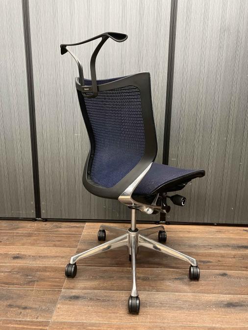 【オフィスの執務室、会議室におすすめ!】■オカムラ(okamura)製 バロン(Baron)チェア ローバック 肘無し ■背面メッシュ ■ハンガー付 ■色:ネイビーブルー×ブラックシェル【国産メッシュチェアの代表格!】