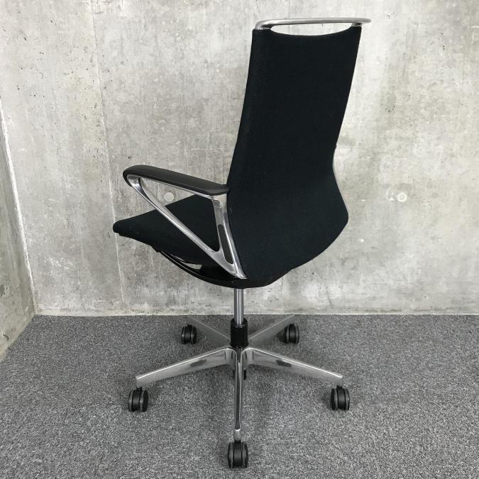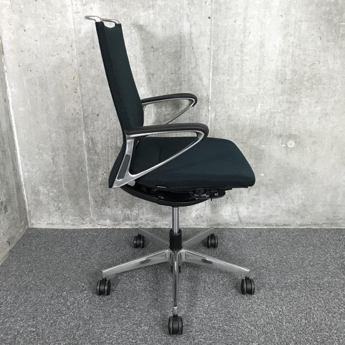 【在庫入替セール】オカムラ モード デザインアーム搭載 ミドルバック ブラック×アルミ脚 張地:クロス(プレーン) 高いデザイン性×シンプルかつ操作性のある機能
