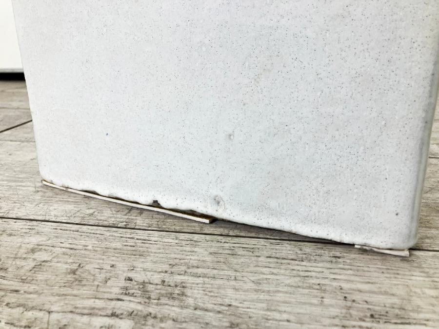 - かなり強い濃い黄ばみ・変色が商品全体にある。(例、天板、幕板、棚板、サイド部分、脚部等にある。)