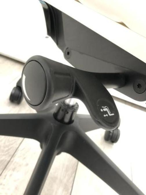 - 座面右下のレバーをスライドさせる「クイックスライドオペレーション」で、リクライニング反力を調整できます。強さの状態が視覚的にわかるため、直感的に操作がおこなえます。