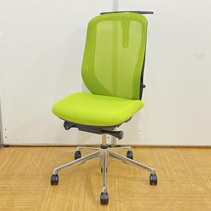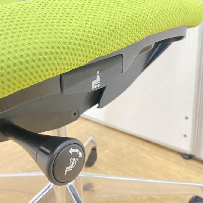 【前傾チルト機能付き】オカムラ製品で最も人気を集める高機能メッシュチェア! ■オカムラ/シルフィーチェア(Sylphy)/ライムグリーン 肘付き ハイバック 背面メッシュ 可動肘