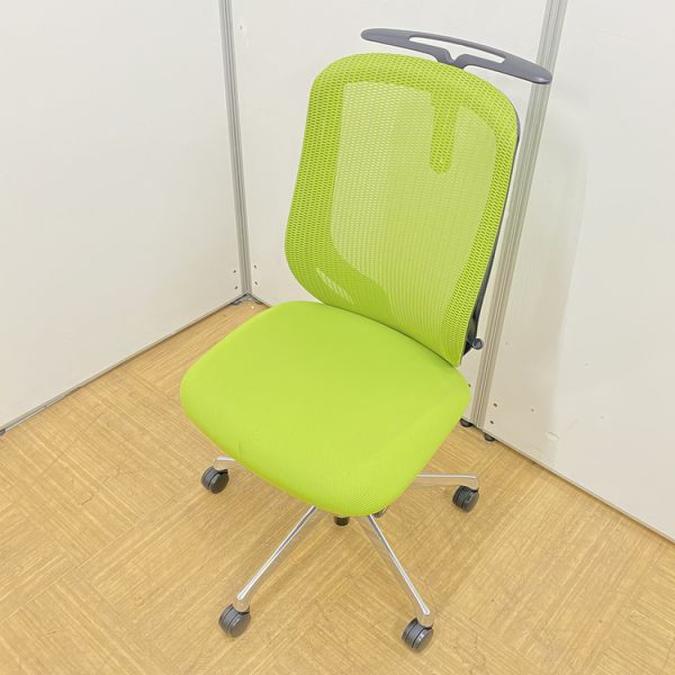 【大人気シルフィーチェア!木目デスクとも相性バッチリなライムグリーンのメッシュチェア!】■オカムラ製 シルフィ(Sylphy)肘無ハイバック ■肘無 ■グリーン×ブラックフレーム ■ハンガー付 ■メッシュ- つくば店