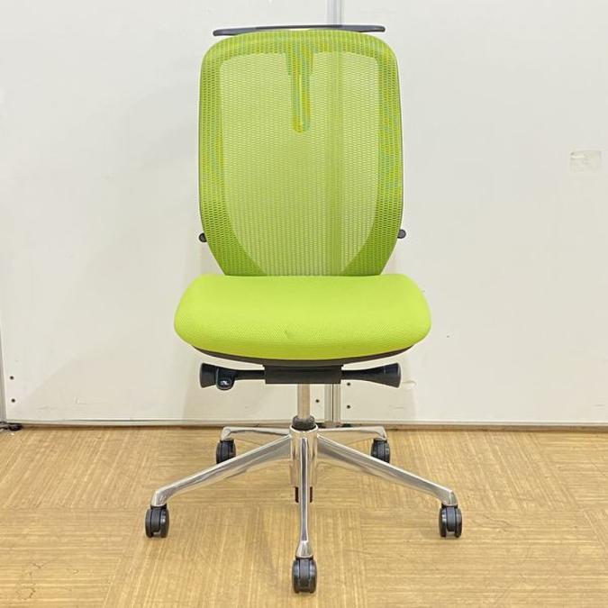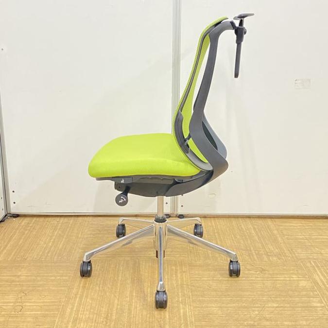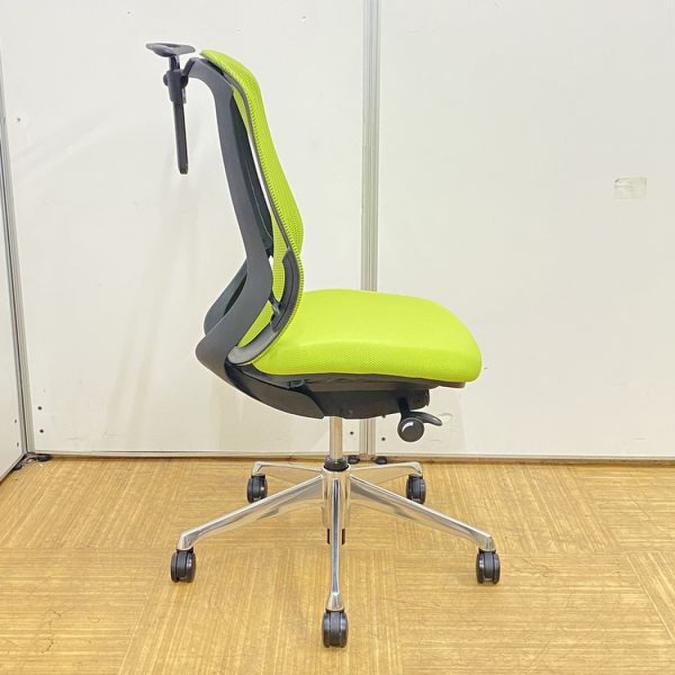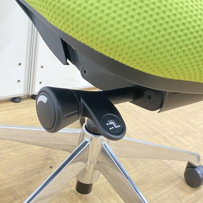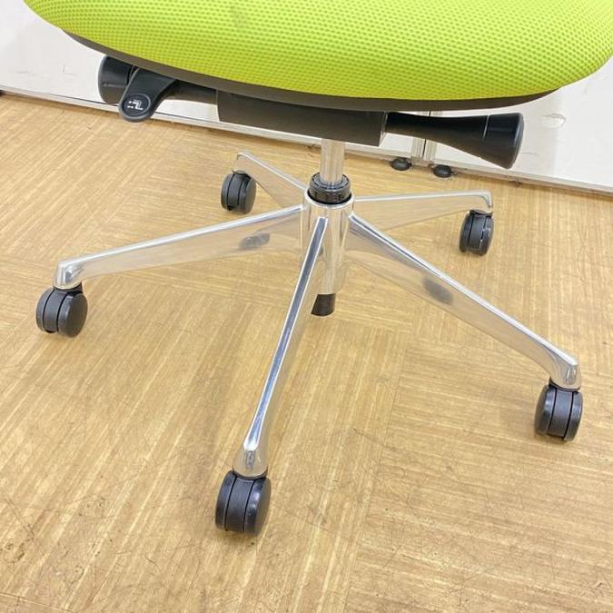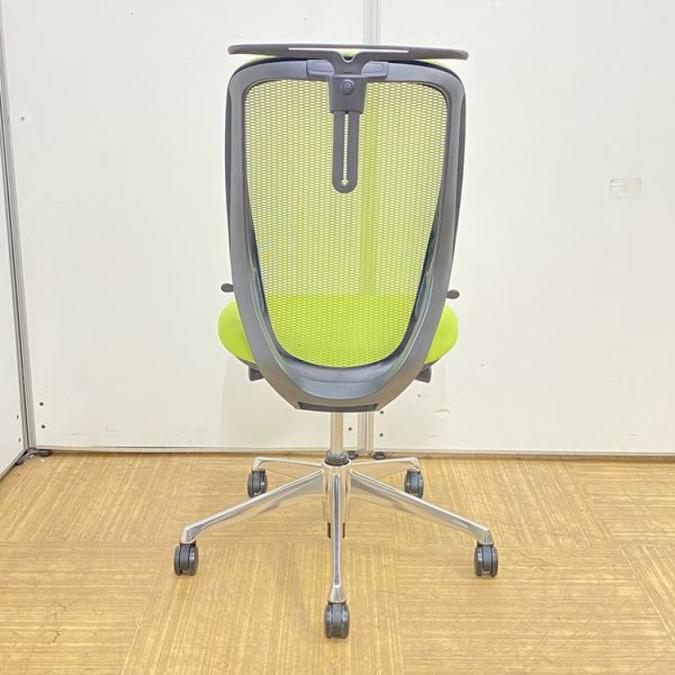 オカムラ製 シルフィ ライムグリーン ブラックフレーム 背面メッシュ ハイバック 樹脂脚 前傾チルト機能付き! オカムラ製品で最も人気を集める高機能メッシュチェア! 肘無しハイバックチェア!!