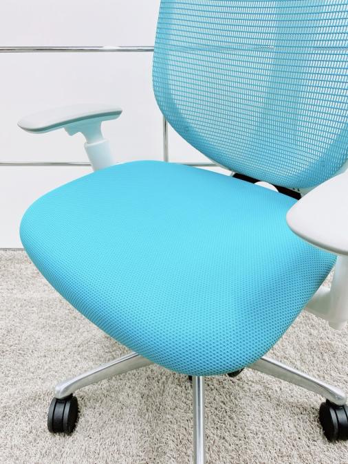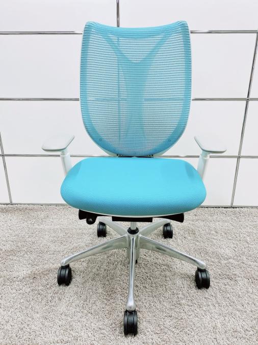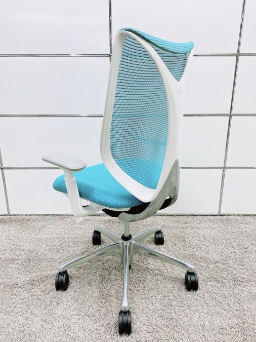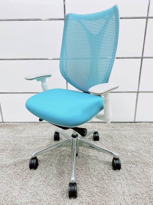 【在庫セール品】【定価約16万円】【前傾チルト付!流れるような美しいフォルムの最高級メッシュチェア!】■オカムラ(okamura)製 Sabrina(サブリナ) ハイバック 肘付き ■可動肘 ■背面メッシュ:アクアブルー/座面:ブルー×ホワイトフレーム【AD】
