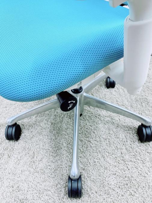 - 椅子と背が連動する「シンクロリクライニング」。リクライニング角度は直立ポジションから前方に10度、後方に23度です。