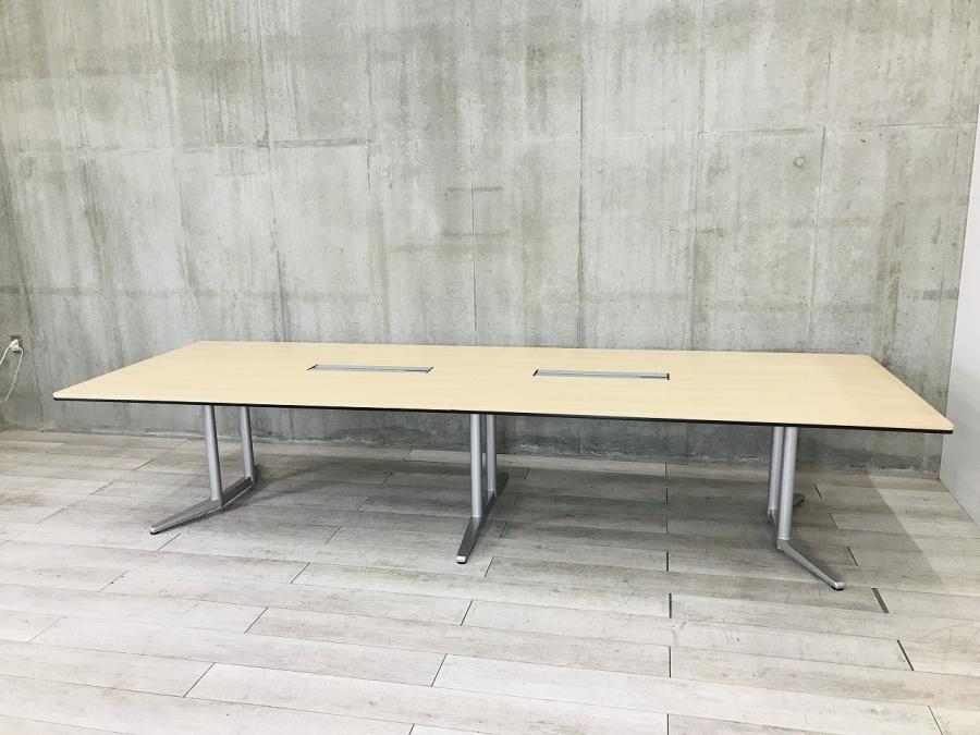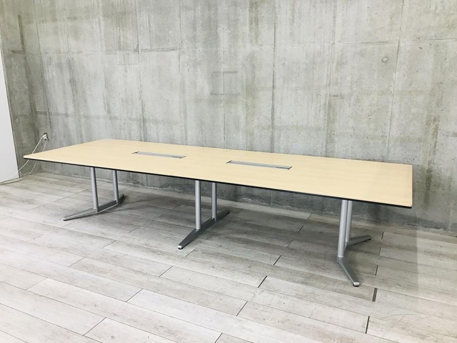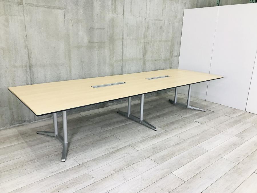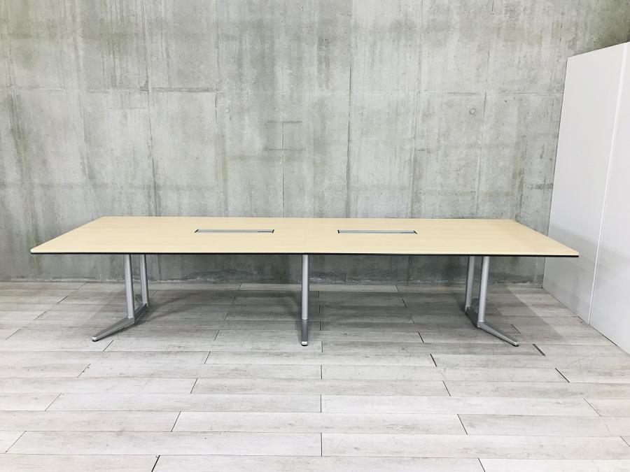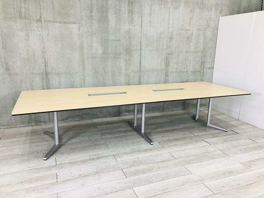 【高級溢れる大型テーブル!】横幅3600mmタイプで8~10名様のご使用にオススメ!】■オカムラ(okamura)製 ラテオⅡ ミーティングテーブル 大型 ■木目ナチュラル ■配線口2口【ID】在庫がある店舗一覧