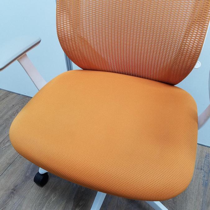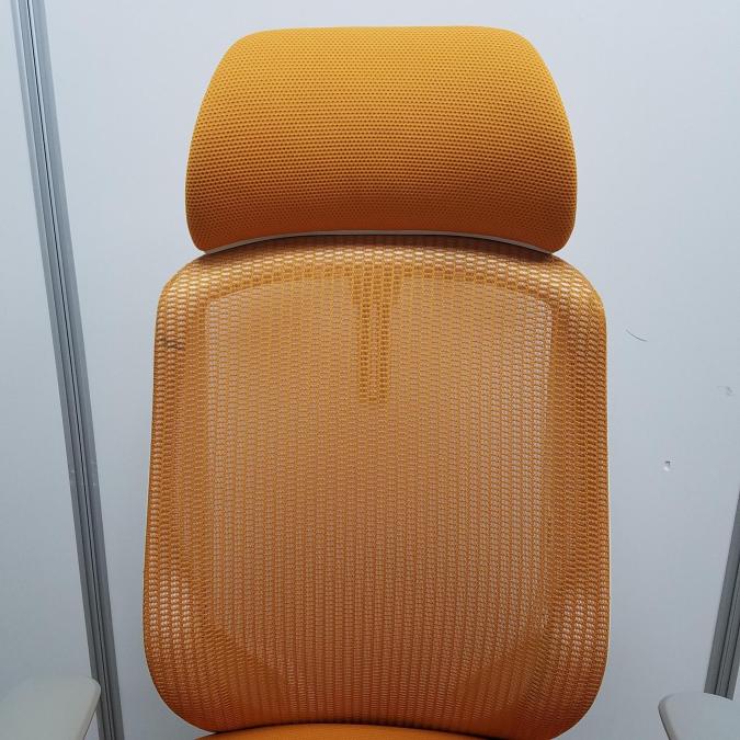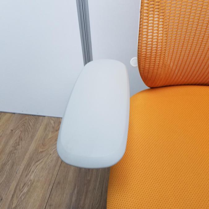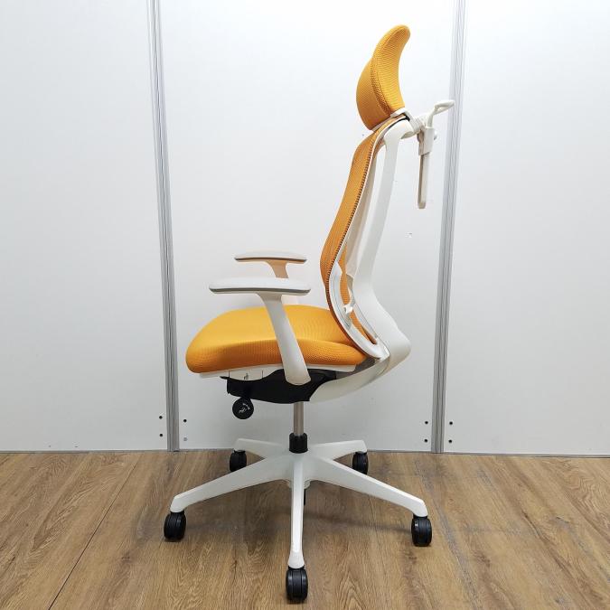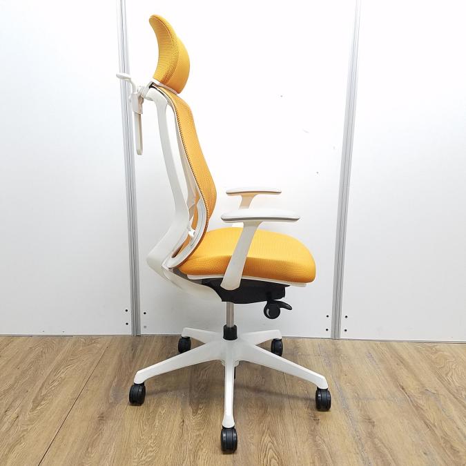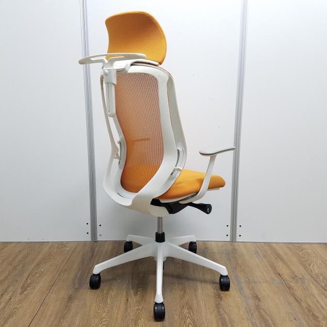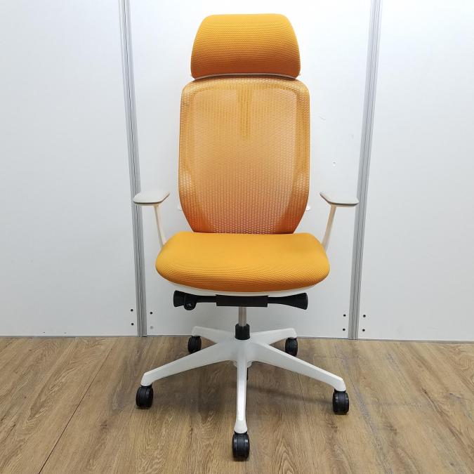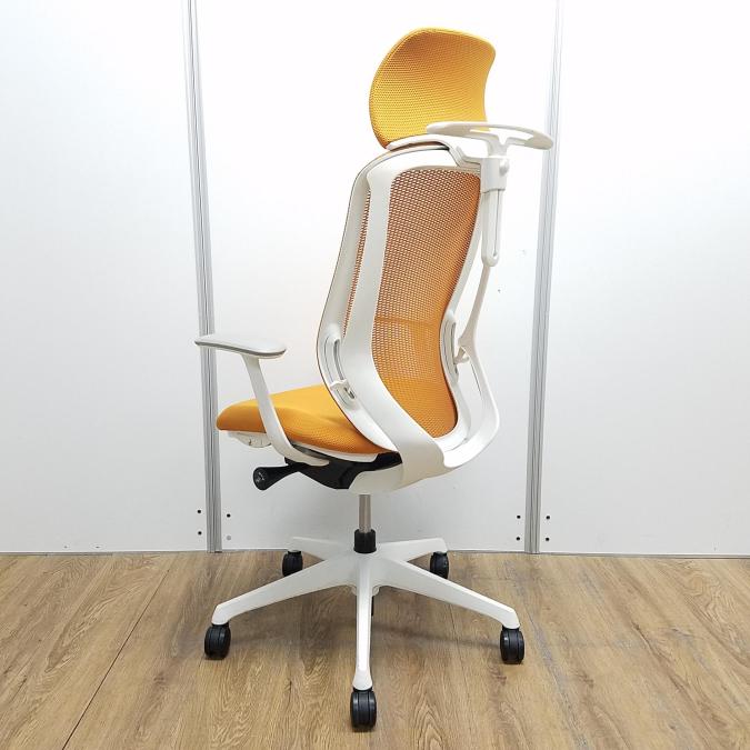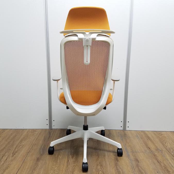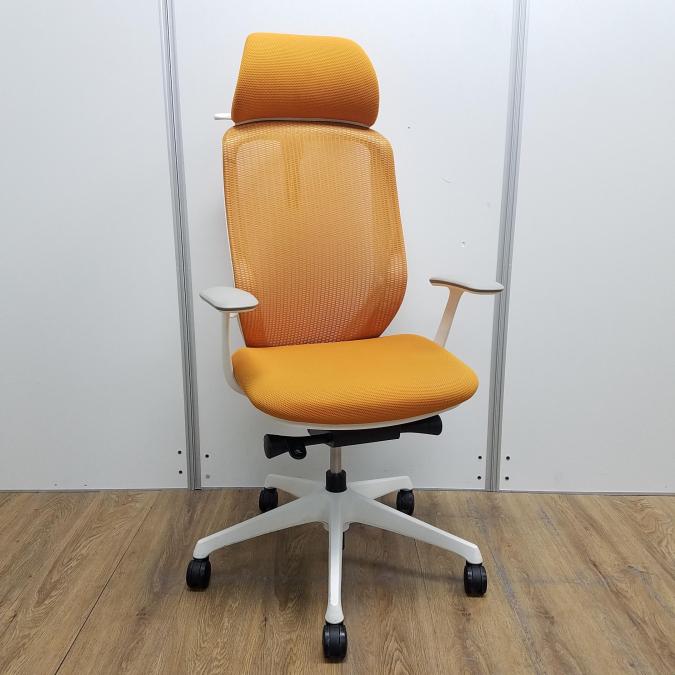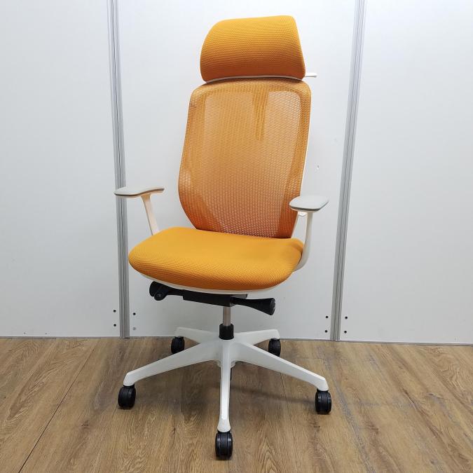 【現品限り】オカムラ製 シルフィーシリーズ オレンジ ホワイトフレーム ヘッドレスト デザインアーム※固定肘 樹脂脚 肘付きハイバックチェア!!- 京都東寺店