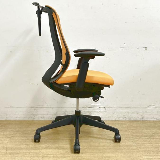 【前傾チルト機能付き】【オカムラ製品で最も人気を集める高機能メッシュチェア!】■オカムラ(okamura)製 シルフィ(Sylphy)チェア 肘付き ハイバック 背面メッシュ ■可動肘・ハンガー付き ■オレンジ×ブラックシェル 高級チェア テレワーク ★ K10