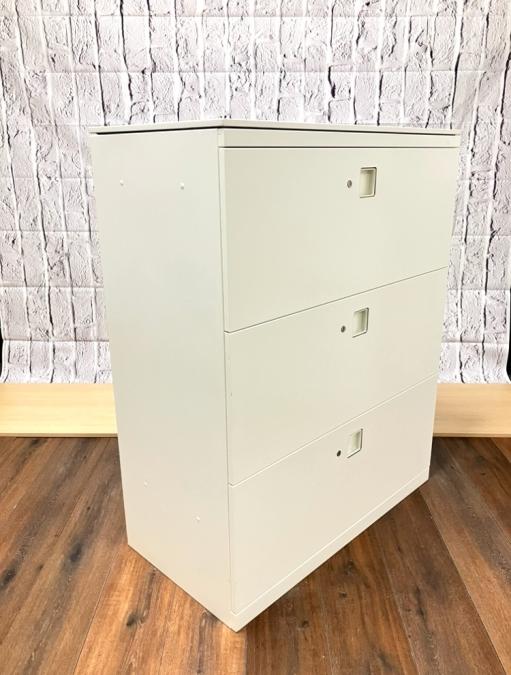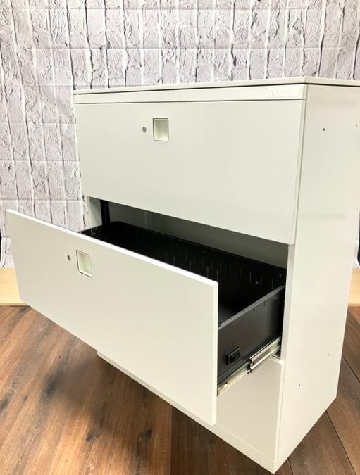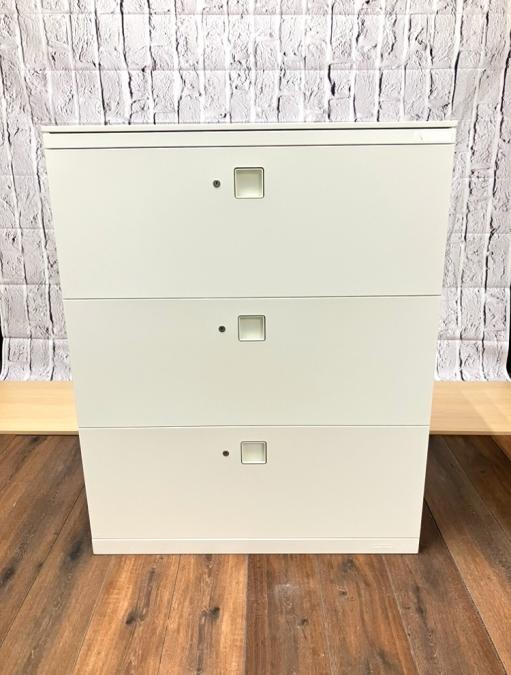 定番/大人気 オカムラ(okamura)製 レクトラインシリーズ 3段ラテラル ローキャビネット ホワイト シリンダー鍵(個別施錠タイプ)※千葉店撮影商品- 千葉店