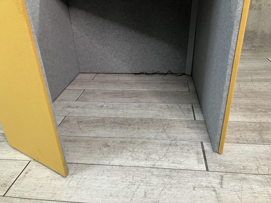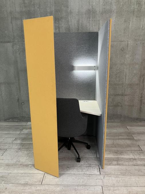【省スペースなワークブース+チェアのセット商品!】【ライトつき】■オカムラ(okamura)製 ドレープシリーズ(テトラタイプ) 集中ワークブース (W1000/D1000/H1920) ※右開口タイプ ■Lives(ライブス) ミーティングチェア ワークチェア ■イエロー×ライトグレー 【ABW商材】【関東倉庫在庫品】【弊社使用欄:A00983975】- 全店共通商品