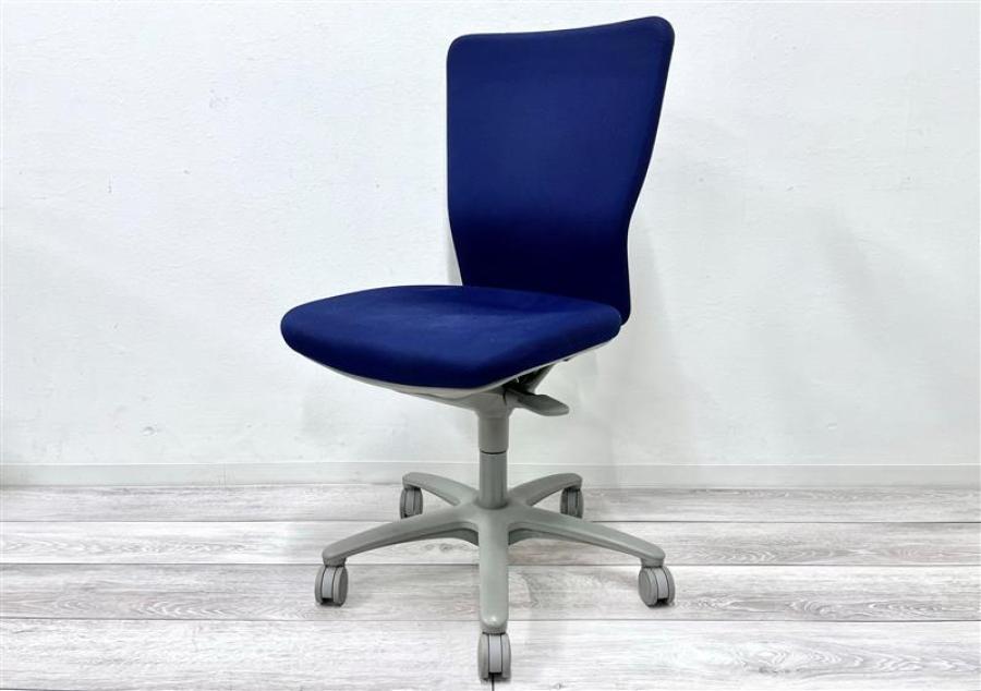 【在庫入替セール】オカムラ カロッツァ 肘無しチェア ゆったり座れるハイバックモデル ダークブルー×ブラックフレーム
