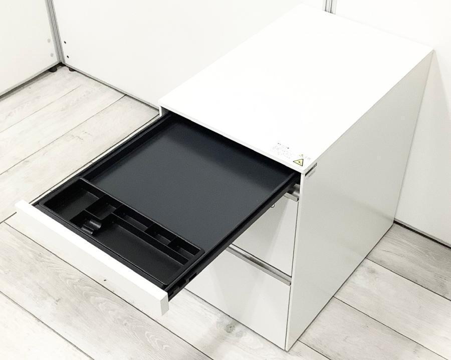 【シャープなデザイン!平机・フリーアドレスデスクのお供に!】■イトーキ(ITOKI)製 インクルード (IncLude) フリアド用ワゴン 3段ワゴン ■ホワイト ■シリンダー錠
