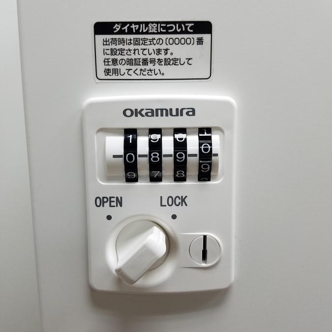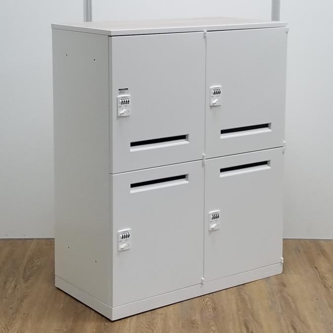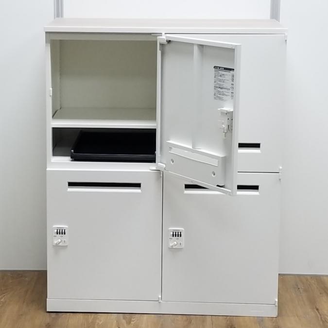 オカムラ製 レクトラインシリーズ ホワイト おしゃれなナチュラル天板付き 投函口あり ダイヤル式 4人用パーソナルロッカー!!※非常は解除キーは付属しておりません- 京都東寺店