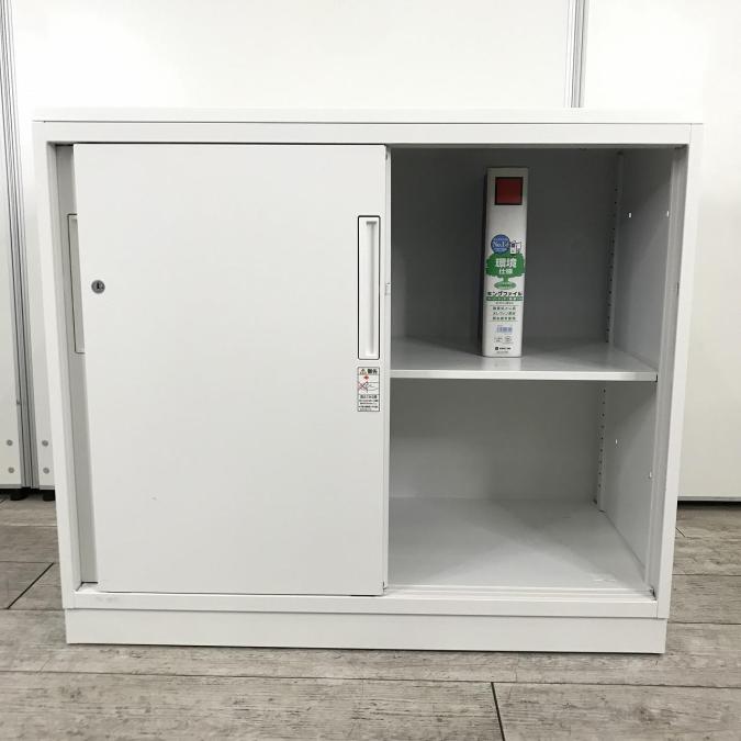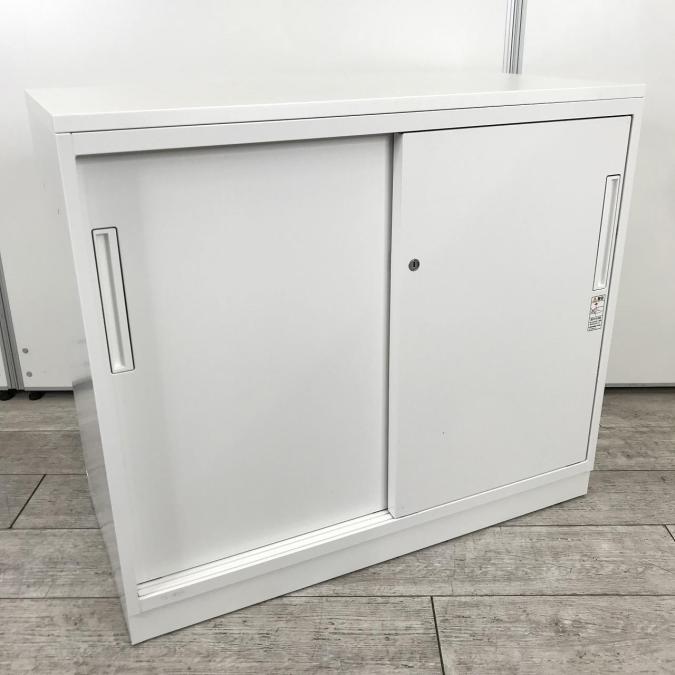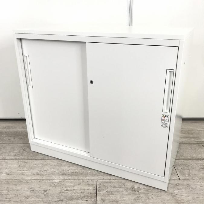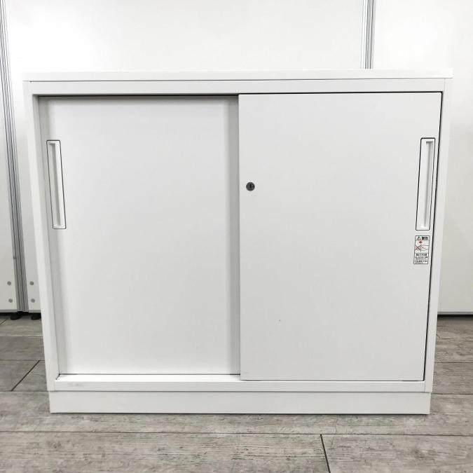 【スライド引き戸だから開閉スペースに困らない!】■コクヨ(KOKUYO)製 エディア(EDIA)シリーズ 2枚引き違い書庫 ローキャビネット シリンダー錠 天板付き ベース付き ホワイト シリンダー錠 収納 中古家具 格安 福岡 オフィス家具 九州最大級《オフィスバスターズ福岡博多店は、福岡を拠点として、日本全国へ中古オフィス用品・オフィス家具を提供しております》