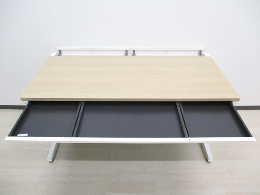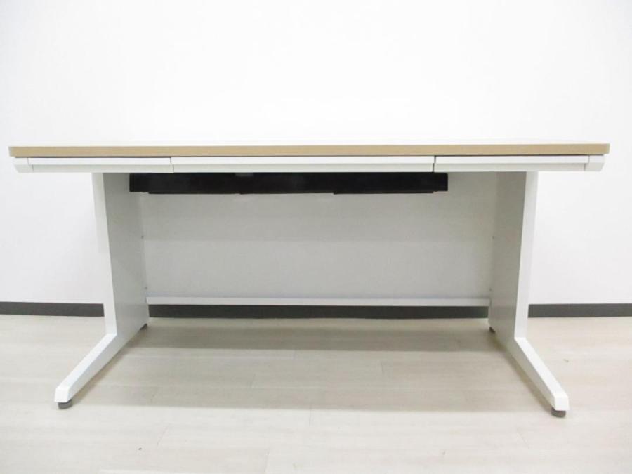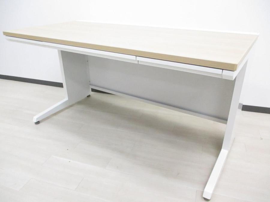 【起業や移転にオススメ!広々1400mm!人気の木目調天板で充実ワーク!】■オカムラ製 アドバンス 平机 ■木目ナチュラル天板×ホワイトボディ ■引出し付- つくば店