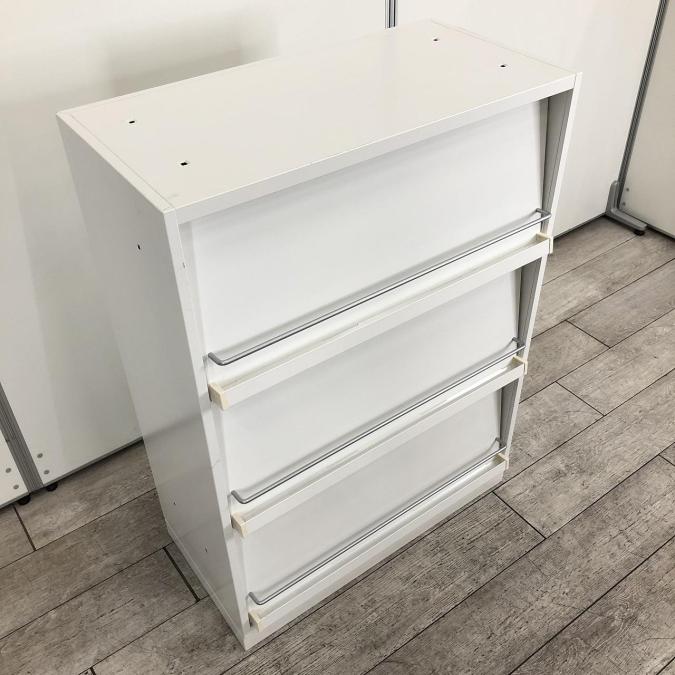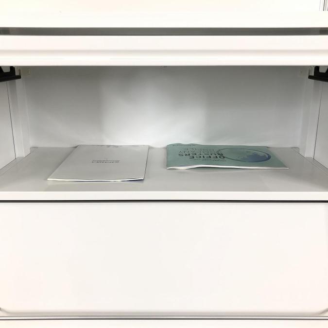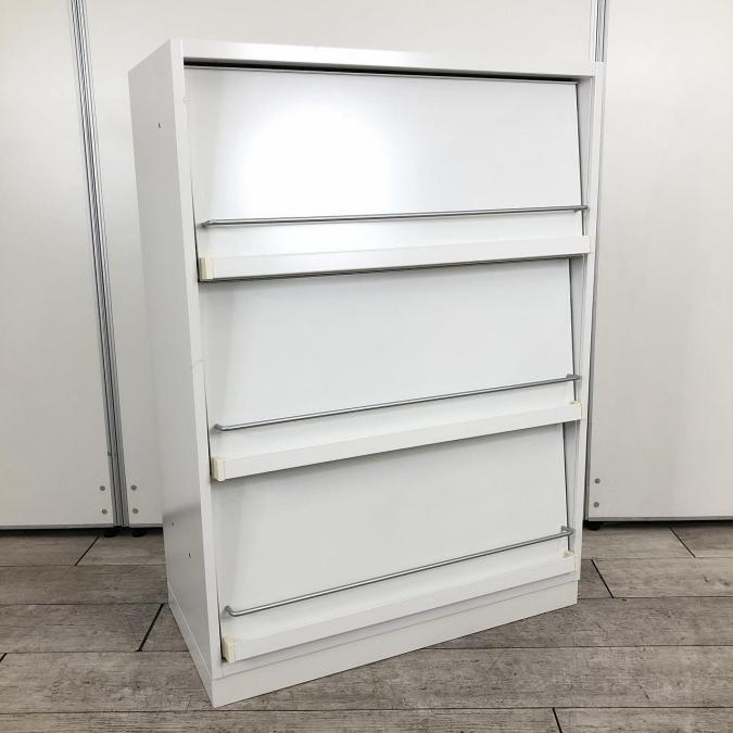 【中古品では珍しい!コクヨ製・3段雑誌架タイプ!】【雑誌・パンフレッド等々、扉を開けると収納でき、オフィスの雰囲気を変えたい方におすすめ!!】■コクヨ(KOKUYO) エディアシリーズ 雑誌架 3段 ローキャビネット ■本体ホワイト【2506】弊社使用欄【A01018642】