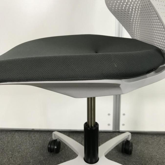 【オフィスに新しい風を吹き込むライトタスクチェア!】【腰回りをしっかりサポート!】■イトーキ製(ITOKI)製 キュアチェア(QuA) 肘無 ミーティングチェア 5本脚 ■背面樹脂メッシュ ■背面:ホワイト/座面:ダークグレー【2509】弊社使用欄【A01032806】