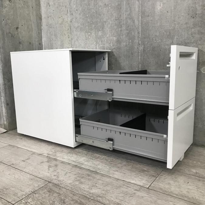 - 一部不具合ありその脇机・ワゴンの本来の効用を果たすための機能以外の一部が使用不可な状態。(例、引出が開閉しづらい、 キャスターロック機能使用不可、ラッチ不良 等がある。)