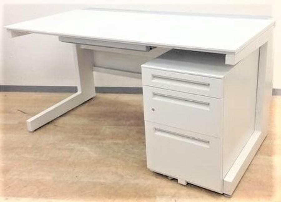 【横幅1200㎜幅の平デスク+ワゴンセット!】■内田洋行(UCHIDA) アルプレス 平机+ワゴン ■ホワイト ■引き出し付 ※左側のみ引き出し付き※付属ワゴンは在庫状況によりメーカー、シリーズが異なります。- 春日部・越谷店