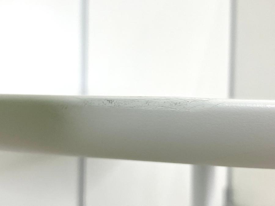 - あり黄ばみ・変色が広い範囲にうっすらある、または濃い黄ばみ・変色が一部ある。(例、天板、幕板、棚板、サイド部分、脚部等にある。)