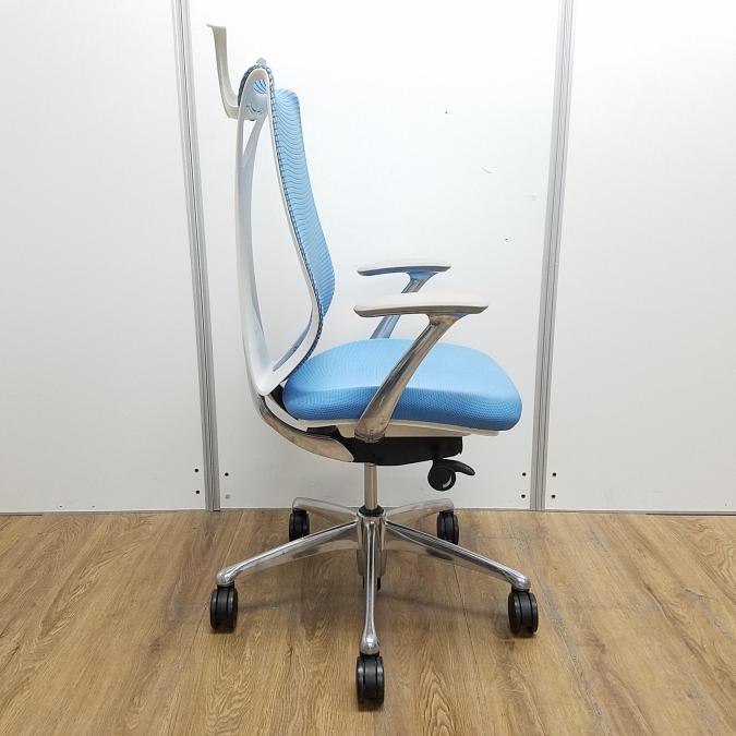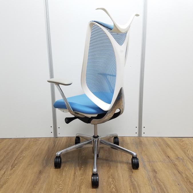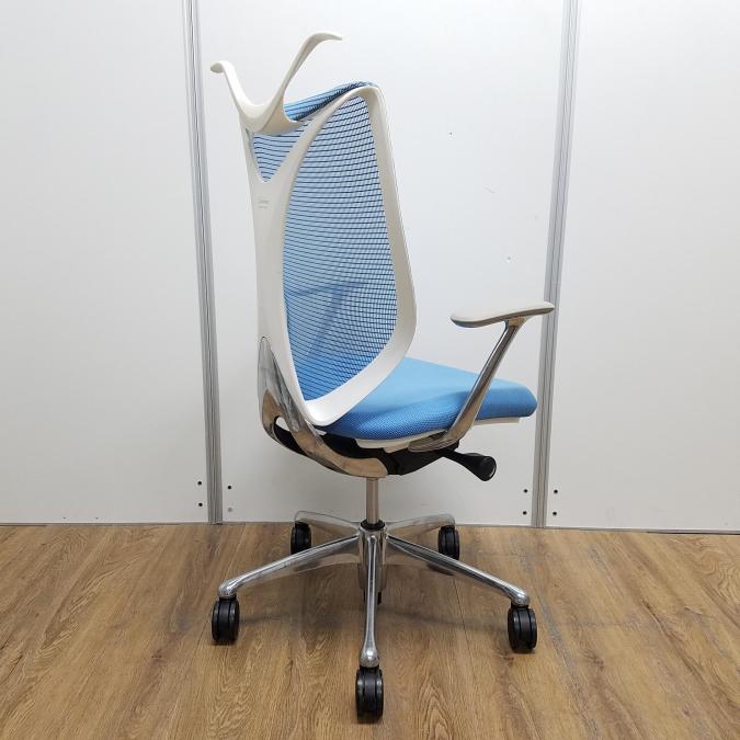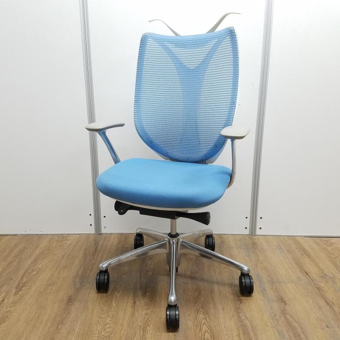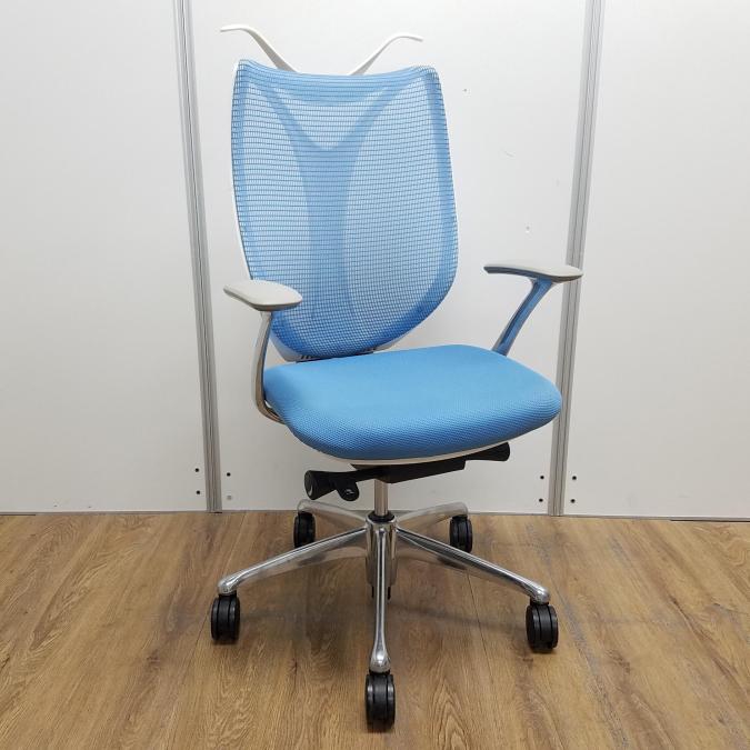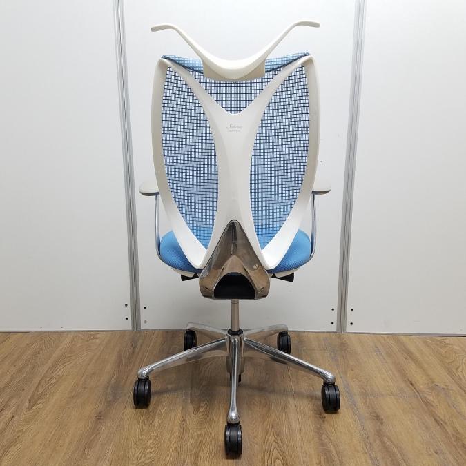 【在庫セール品】【定価約16万円】【前傾チルト付!流れるような美しいフォルムの最高級メッシュチェア!】■オカムラ(okamura)製 Sabrina(サブリナ) ハイバック 肘付き ■可動肘 ■背面メッシュ:アクアブルー/座面:ブルー×ホワイトフレーム【AD】