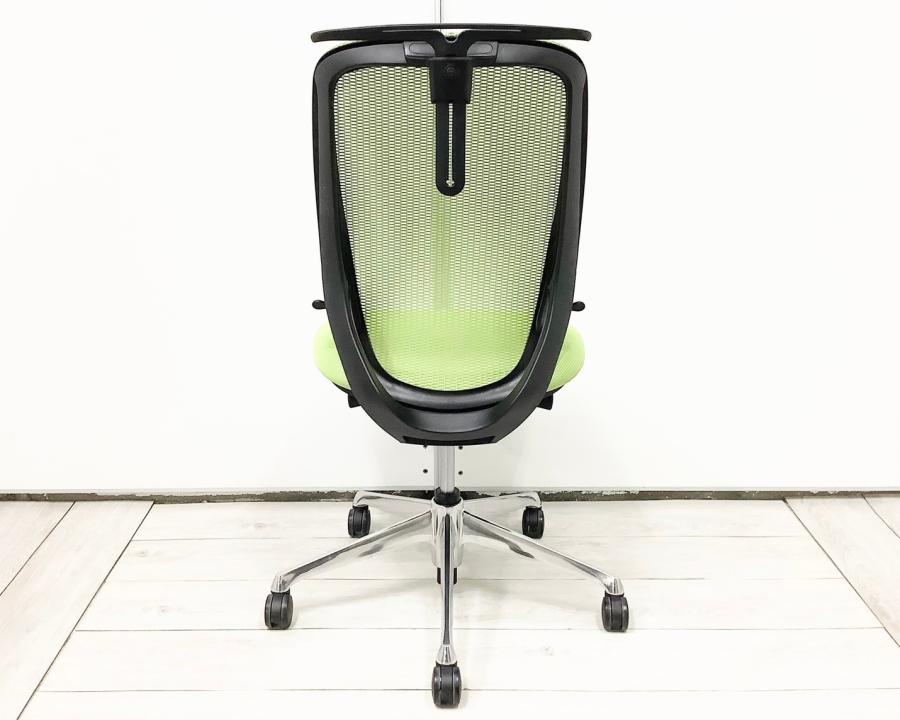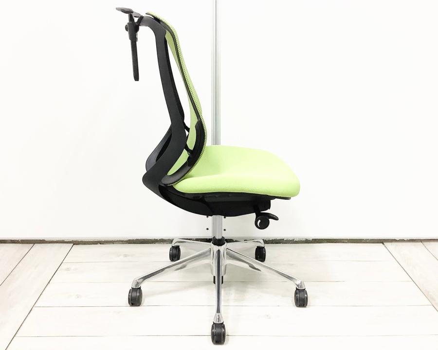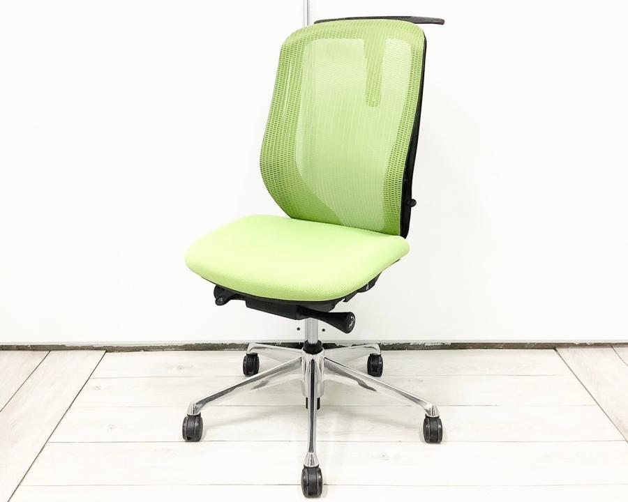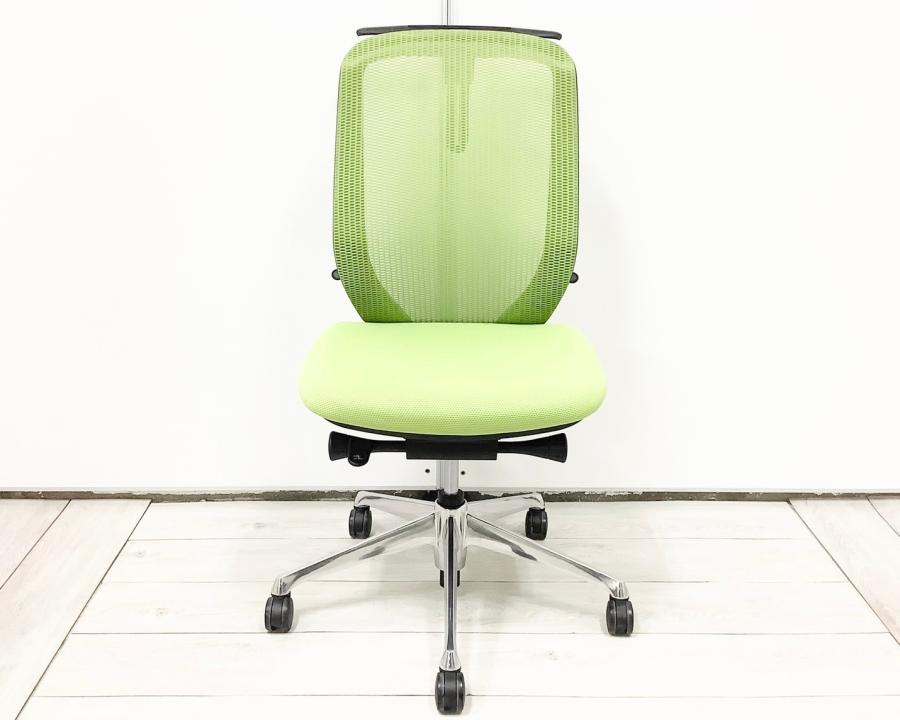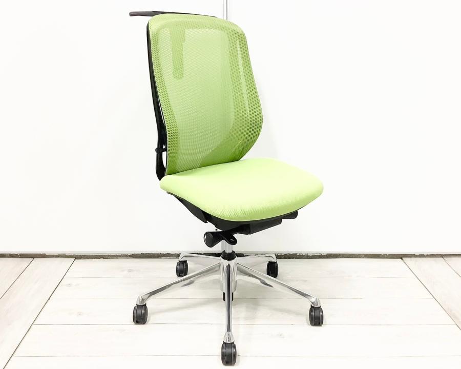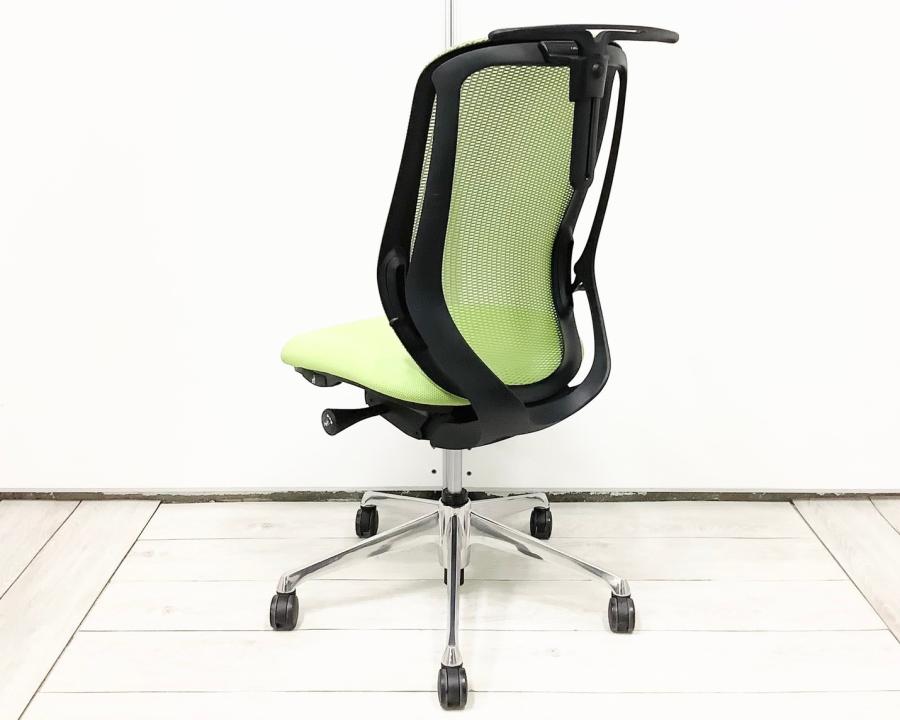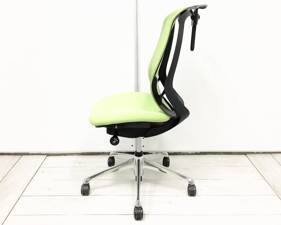 オカムラ製 シルフィ ライムグリーン ブラックフレーム 背面メッシュ ハイバック 樹脂脚 前傾チルト機能付き! オカムラ製品で最も人気を集める高機能メッシュチェア! 肘無しハイバックチェア!!