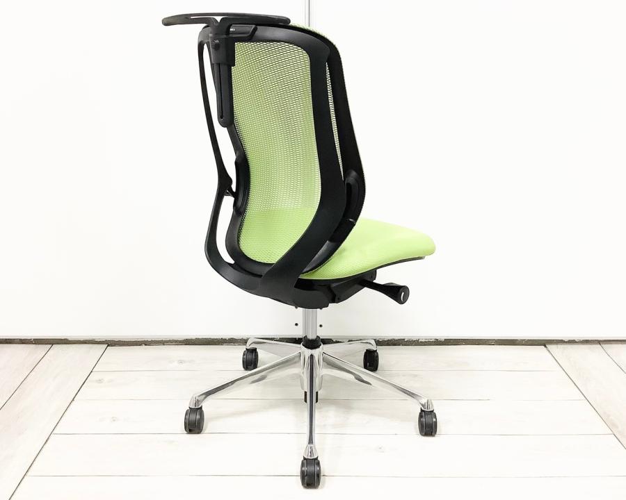 【前傾チルト機能付き】オカムラ製品で最も人気を集める高機能メッシュチェア! ■オカムラ/シルフィーチェア(Sylphy)/ライムグリーン 肘付き ハイバック 背面メッシュ 可動肘