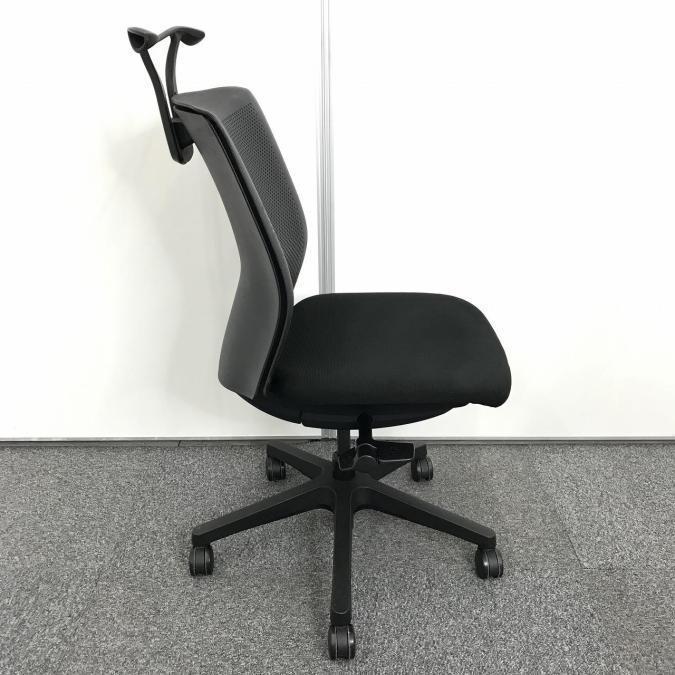 【人気のブラックカラーの肘なしOAチェア!】■オカムラ製 オムネス ●背中を包みこむような座り心地!【AD】