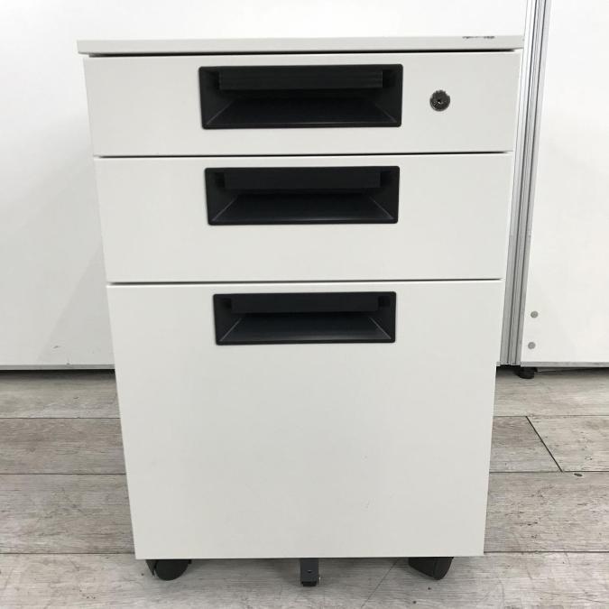 【書類整理に便利!平机の相棒!】■プラス(PLUS)製 フラットラインシリーズ デスクインワゴン 3段ワゴン H605mm ■ホワイト シリンダー錠- 名古屋本店