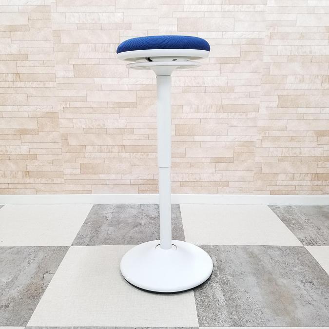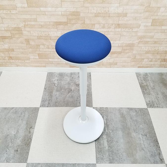 【「座る」と「立つ」のいいとこ取り!】■オカムラ(okamura) ピルエット カウンターチェア スツール ■ブルー シェル:ホワイト【高さ調節可能なパーチングスツール!】- 大阪・堺店