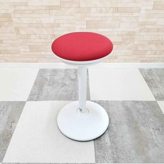 【「座る」と「立つ」のいいとこ取り!】■オカムラ(okamura) ピルエット カウンターチェア スツール ■レッド シェル:ホワイト【高さ調節可能なパーチングスツール!】- 大阪・堺店