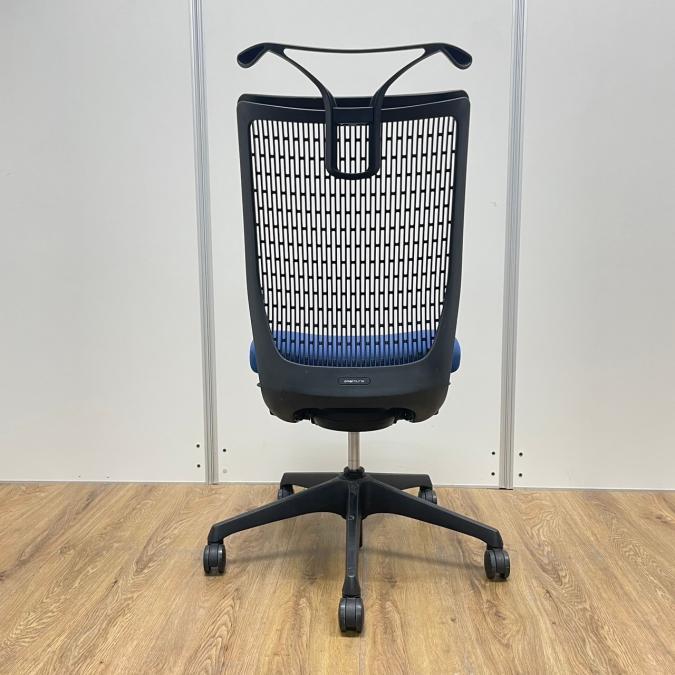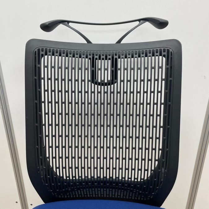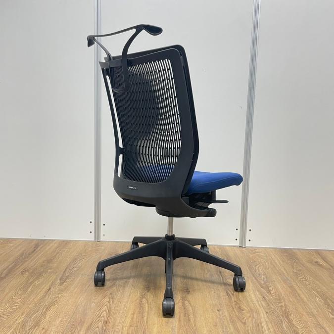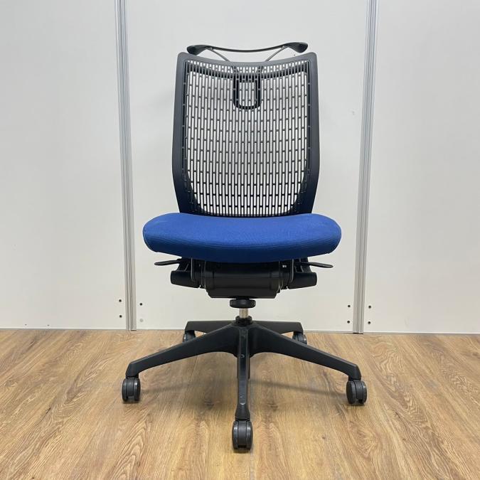 【商品入替のため、残り2脚限り】オカムラ製 ヴィスコンテシリーズ ミディアムブルー ブラックフレーム コートハンガー付き 人間工学に基づいた心地よい座り心地! 高いデザイン性と快適なクッション性が人気 肘無しハイバックチェア!!- 京都東寺店
