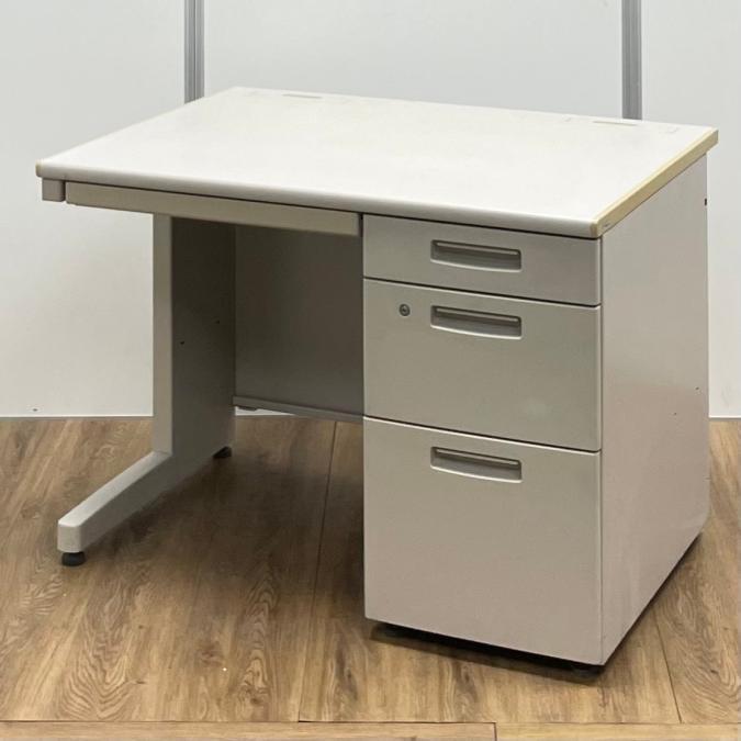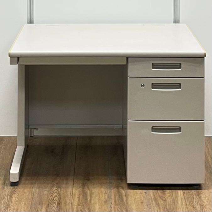 【側面日焼け・ペントレイ、仕切り板なし】国内メーカー コクヨ製 BSシリーズ ニューグレー コンパクトなW1000サイズ 片袖机!- 京都東寺店