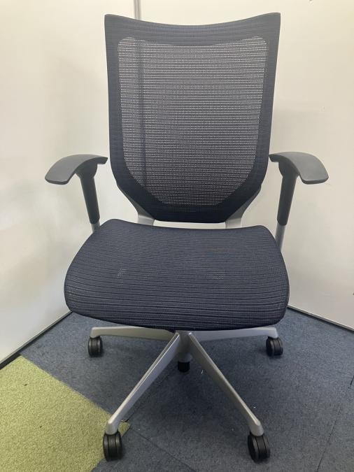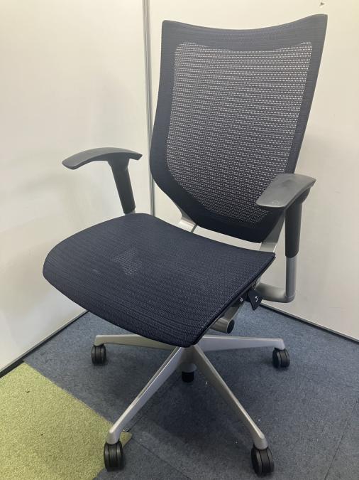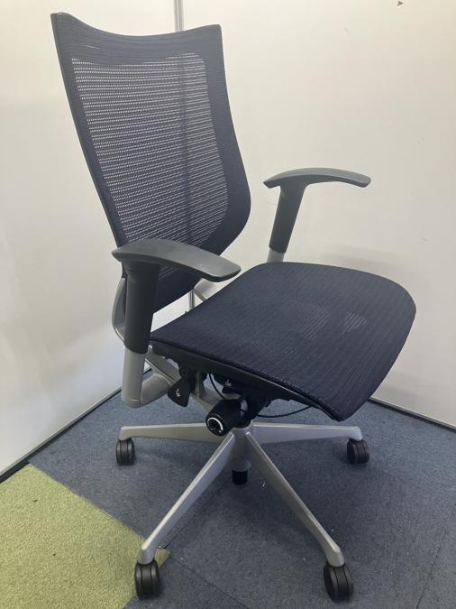 【限定1脚】オカムラの大人気チェア!! ■オカムラ バロン ネイビー 可動肘 座面・背面メッシュ ブラックフレーム- 名古屋本店