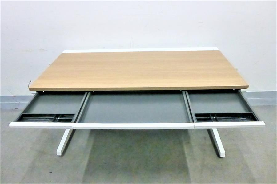 天板下には引出しが3か所付いており、文具や小物や簡単な書類等も収納可能です。