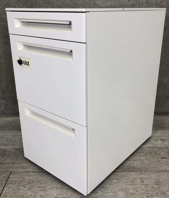 【1台限定の為、お安く!】【フリアドデスクや平机の収納力アップに最適!】■オカムラ(okamura)製 アドバンス(ADVANCE)シリーズ 3段ワゴン フリアド用 W390×D580×H650㎜ ■ホワイト ■ダイヤル錠