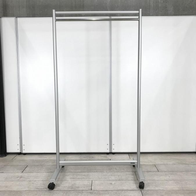 【女性物のロングコートなどもかけることが可能!キャスターも付いており使い勝手は抜群!】■オカムラ製 コートハンガー ■シルバー ■キャスター付- つくば店