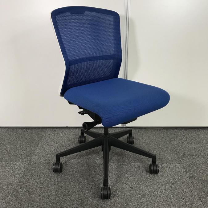 【5脚入荷】【洗練されたデザインで大人気!ワンランク上の座り心地!】■ウチダ (UCHIDA)製 エルフィ (ELFIE) 肘無ミドルバック ■背面メッシュ ■マリンブルー×ブラックフレーム ■ハンガー付 オフィスバスターズ 梅田本店