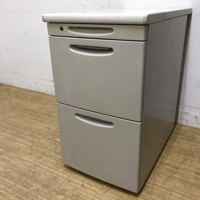 3段脇机(A4×2+ペントレー)オカムラ SD-V ニューグレー シリンダー錠 デスクサイド収納 ※樹脂分に日焼け有- 名古屋千種店