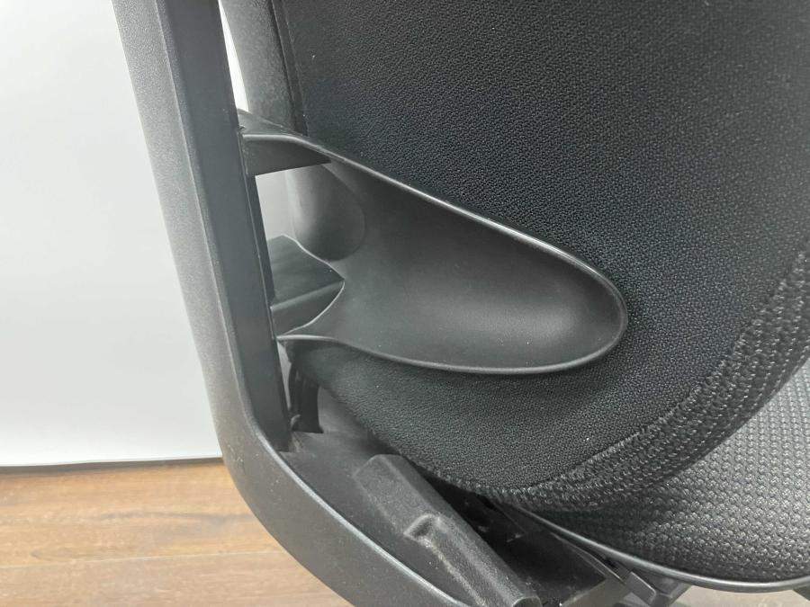 例えば、座面は、イトーキ独自の"ベンディングシート"という機構により、クッション、インターシェル、空洞という三層構造になっています。 この真ん中に挟まっているインナーシェルが、着座時の姿勢に合わせて体重を分散してくれるので、どんな姿勢でも体になじみ、疲労を軽減してくれます。 さらに、座面は前後に4センチほど奥行きを調整でき、前傾姿勢で座りたい、深く腰掛けたい、膝裏を圧迫されたくないなど、個人の好みに合った快適さにカスタマイズが可能となっています。