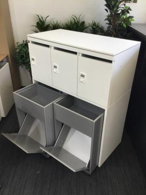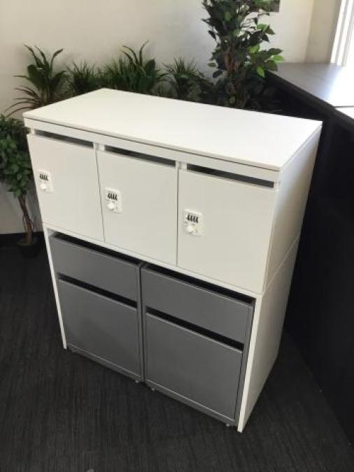 【25/③】大人気 オカムラ製 3人用パーソナルロッカーが入荷! セキュリティ収納 【 ワークカート用ドック 】 ※ロッカー 上段:メールボックス+下段:ファイルボックス収納可能 オカムラ ワークカート用ドック 【 ロッカー3ケ付き 】 【 ダイヤル錠付き 】 【 完成品渡し 】 収納システム*福岡市で、中古オフィス用品・オフィス家具をお探しなら「オフィスバスターズ福岡南店」へ*福岡でのオフィス用品一式ご手配可能!- 福岡南店