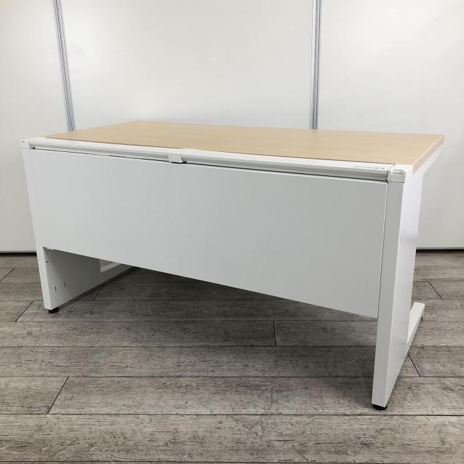 【人気のナチュラル天板の平デスク!上長席にもお勧め!】■コクヨ(KOKUYO)製 iS(アイエス)シリーズ 平机 W1400㎜ 引き出し無し ■天板ナチュラル 本体ホワイト【K11】
