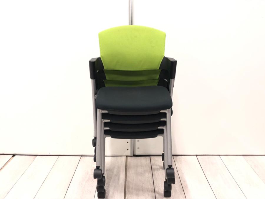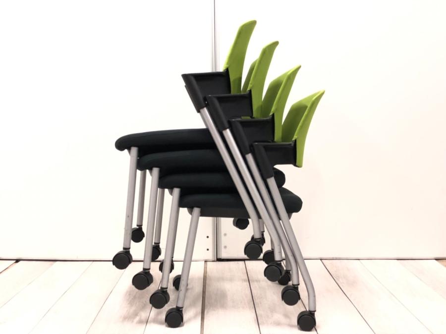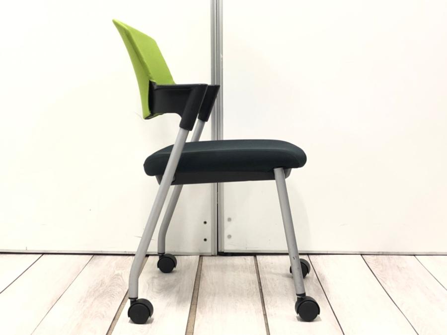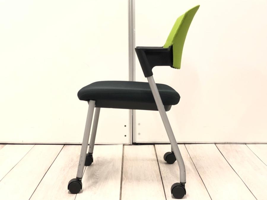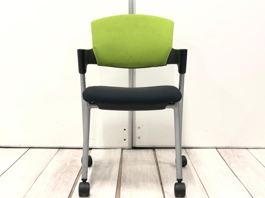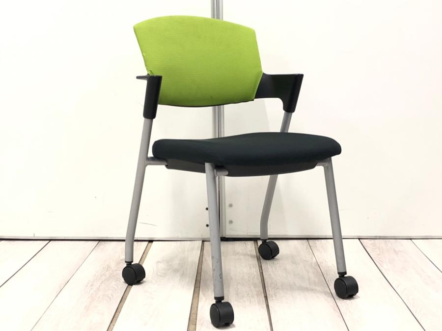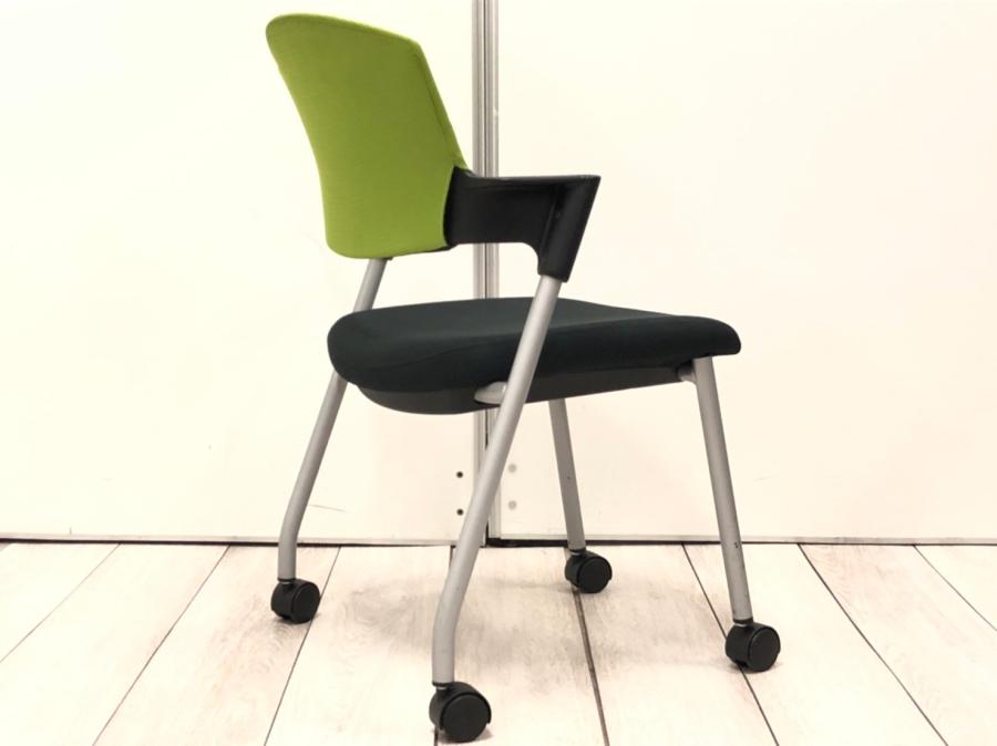 【シンプルスマートなスタッキングチェア!分厚いクッションで長時間でも快適な座り心地!】/オススメ(おすすめ) /人気商品【弊社使用欄:A00990458】■コクヨ(KOKUYO)プロッティ/スタッキング/ミーティングチェア/固定肘/キャスター付/背面カバー付き/色:グリーン×座面ブラック- 池袋店
