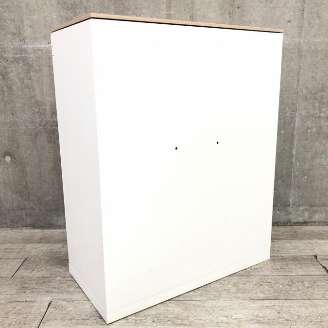 【オフィスの書類をスッキリ整理!取っ手がどの方向からでも開くマルチハンドル!】■オカムラ(okamura)製 レクトラインシリーズ 両開き書庫 ローキャビネット ■本体色:ホワイト ■シリンダー錠 ■ナチュラル天板付き