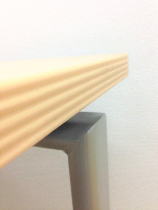 - あり黄ばみ・変色が広い範囲にうっすらある、または濃い黄ばみ・変色が一部ある。(例、天板、幕板、棚板、サイド部分、脚部等にある。)